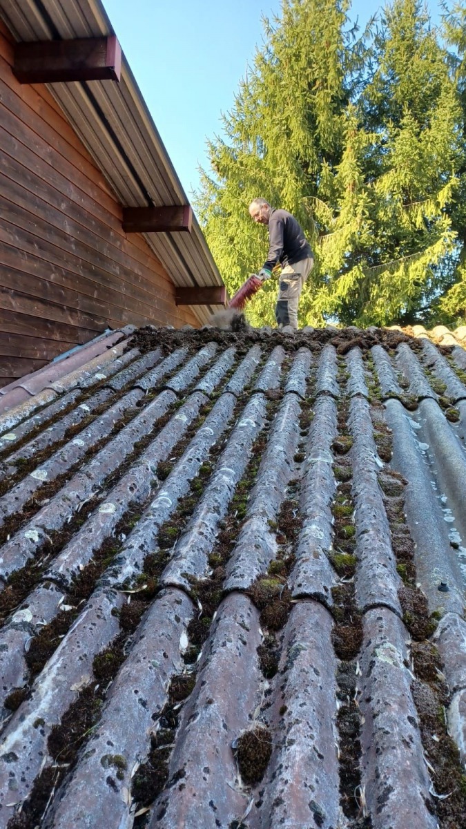 Die Dächer werden vom Moos befreit...