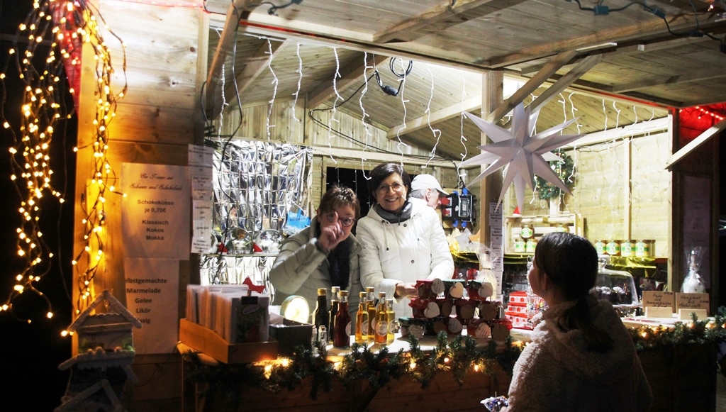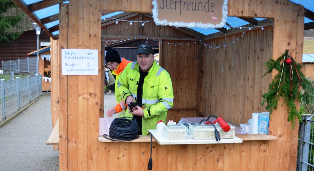 Fleißig wurden die Hütten dekoriert und Lichterketten installiert, sollte doch das Ganze in weihnachtlicher Atmosphäre erstrahlen, dazu wurden einige Meter an Kabel verlegt, geschraubt, beklebt, ja sogar auf Details geachtet. Jeder brachte seine Kreativität ein! Zum Teil war man schon so weit, dass bereits das “Verkaufsgut” drappiert wurde. Mit viel Hingabe und Geschmack, konnte die Lust und Freude an dieser Veranstaltung erkennen …