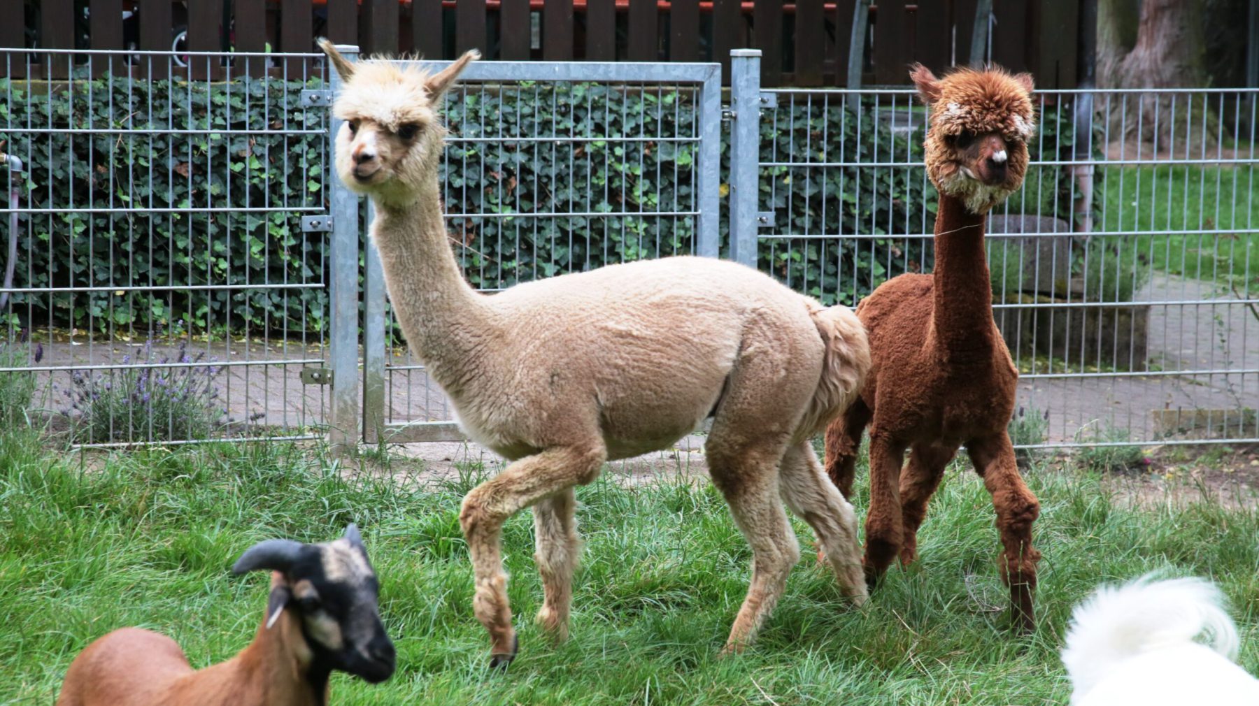 Unsere Burenziege Theo hat am Sonntag neue Gesellschaft in sein Gehege bekommen. Nachdem der Tierpark erst kürzlich durch 3 Nandus bereichert wurde kamen nun als neue Attraktion noch zwei Alpakas hinzu.